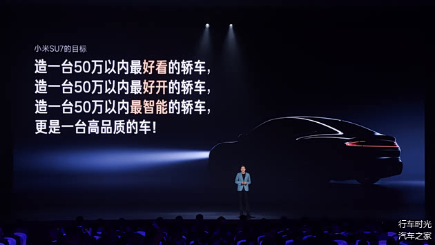 在发布会上,小米集团创始人、董事长兼CEO雷军表示:“这是小米 SU7 第一次正式亮相,也是我人生中最重要的时刻。这个时代的梦想之车必须要有最先进的智能科技和最出色的驾驶质感。我们希望造一台 50万以内最好看、最好开、最智能的轿车,造一台高品质的车。”