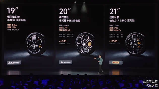 此外,小米SU7还采用了半隐藏式门把手设计,并提供19英寸低风阻轮毂和米其林低滚阻轮胎,另外还可选装20英寸梅花轮毂+米其林PSEV静音胎、21英寸运动轮毂+倍耐力P ZERO运动轮胎。