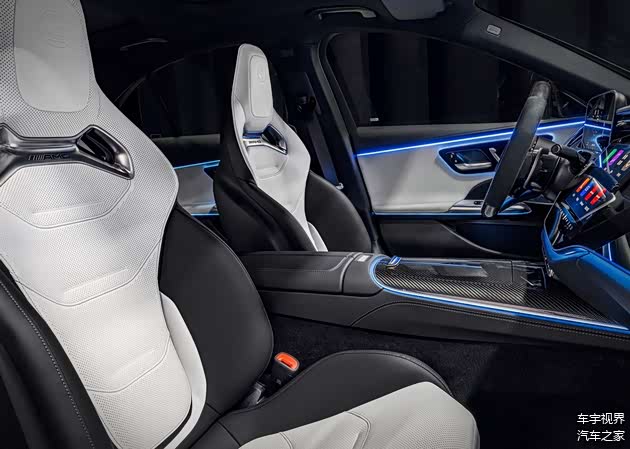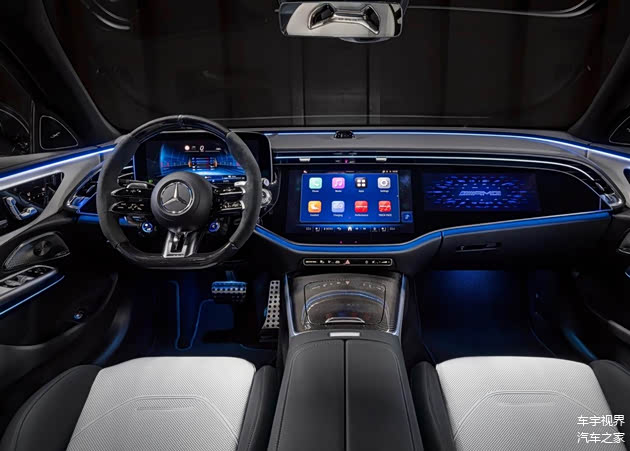 内饰部分,全新AMG E53的装修风格当然也与最新款奔驰E级为同款。如“巴赫座舱”、蜻蜓式方向盘、全新座椅电动调节按钮等。不过,全新AMG E53的内饰战斗氛围,无疑更加浓厚,如车内大量碳纤维材质作为装饰、奔驰AMG桶椅造型、方向盘双旋钮样式,在车内氛围灯的渲染下,性能味儿的确拿捏得淋漓尽致。