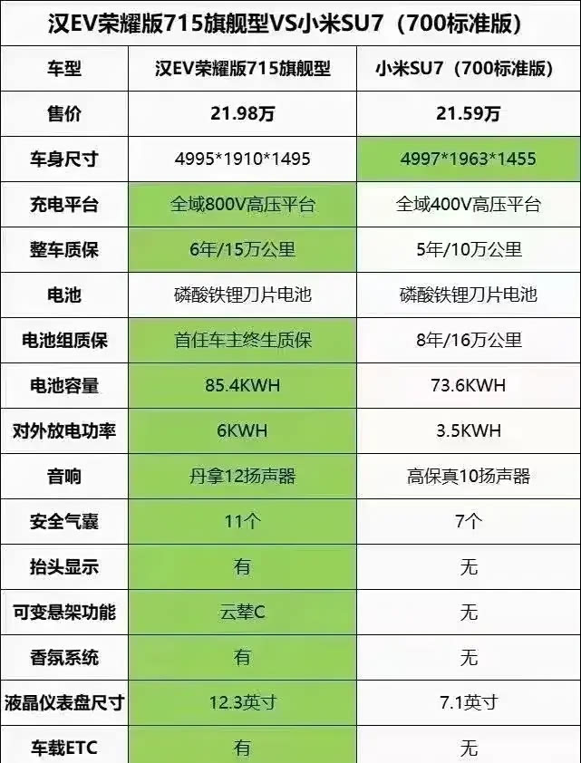 汉EV对比小米su7,比亚迪才是性价比之王!