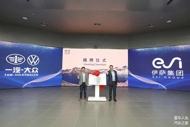 ESI集团执行副总裁兼首席收入官Francis Griffiths先生与一汽-大众技术开发总监邓国辉先生为材料测试与智能仿真联合实验室举行揭牌仪式