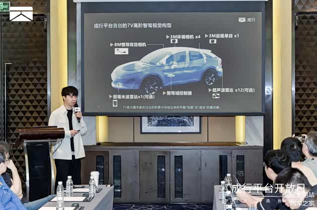 7V + 100TOPS 版本由成行平台与高通 SA8650 单芯片强强联合,包含前视惯导立体双目摄像头、一个后视单目摄像头以及四个环视鱼眼摄像头组成的 7V 视觉构型传感器,「是目前最为简洁的 L2+ 级高阶智驾方案」,也是「全球第一家使用 7V 视觉就能实现高阶智驾的解决方案」。