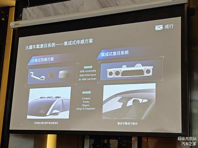 为了更好地控制成本,并且提升智驾装车效率,「激目」方案创新地将车辆前向感知所需的所有传感器都集成到了一个「盒子」里,包括一个激光雷达和三个摄像头,并且将其塞到了座舱内安装,透光率 70% 以上的前挡风玻璃即可适配。这与现在市面上大部分将激光雷达装在车顶、车头的外置设计有很大的区别,在安装的时候也很简便,一次即可完成,购置成本、安装成本、维护成本都大幅下降。