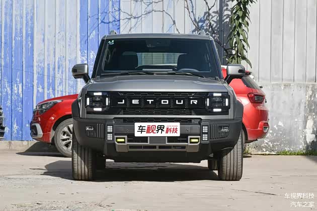 捷途山海T2的外观极具辨识度,采用了前大灯组与前格栅相融合的设计,拓宽了车头的横向视觉效果。另外,新车的前包围采用了更具越野气息的造型样式,不仅内嵌的了LED灯组,还搭配了双侧拖车钩,凸显越野气质。