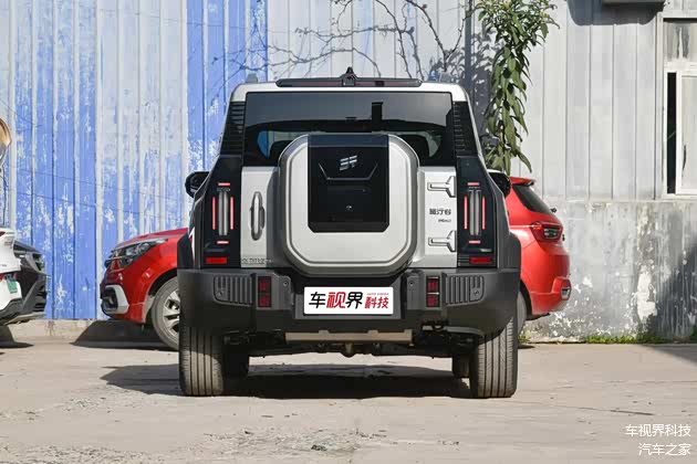 车尾配备了高位刹车灯,并搭配了方形的“小书包”设计,尾灯组采用了纵向布局的设计,搭配后包围宽厚的造型,越野属性直接拉满。