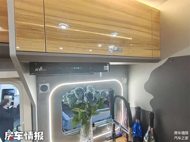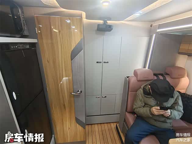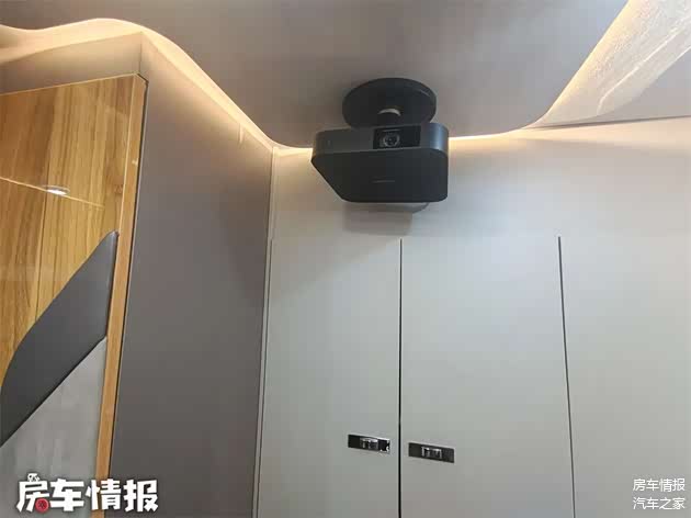 这款车也可以在极寒条件下正常行驶,车后方做了一整面的储物柜,可以放置一些衣物以及平常的生活用品。头顶处还带有一台投影仪,在车内就能够观看大电影啦!整车还带有地暖功能,可以保证冬天的使用温度。