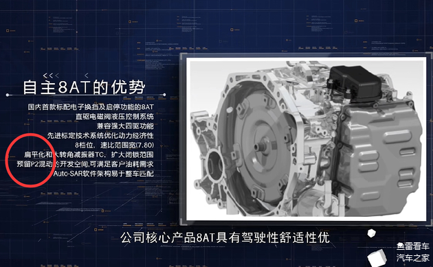 记得奇瑞自产8AT还未上市之前(查阅的信息是2021年12月29日),笔者在展示样机的背景介绍信息里发现了疑似混动版的相关信息,但也只能说是疑似,特别是奇瑞后续各种DHT混动专用变速器亮相之后,也就没投入更多的关注度了,毕竟全球广阔市场并不是说都需要新能源车型,燃油版的市场容量依然庞大,仅仅是目前的8AT本身就足以支撑其好长一段的使用寿命期,但在孚祯动力自己发布的官方视频里,AT混动专用变速器冷不丁的亮相,才让笔者想起来,之前的分析看来是没错。