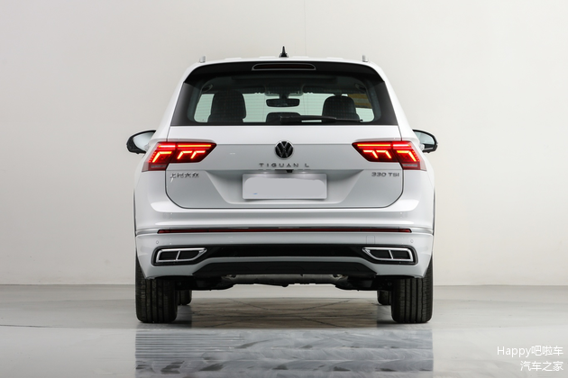 大众途观L尾部造型方面,车顶配备有尺寸比较大的扰流板,尾灯组采用了熏黑处理,属于家族化造型;牌照框区域采用了内凹式设计,点缀出了车尾的立体感;底部配备有贯穿式镀铬条,而且营造出了双边共两出排气装饰罩造型。