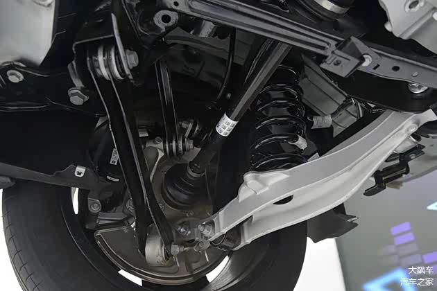 后悬是标准的五连杆结构,主要的下摆臂是铝合金材质,其余四根连杆都是冲压钢板。
