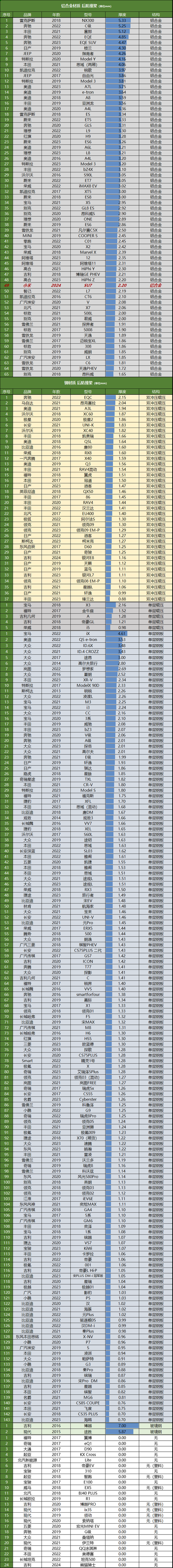 后防撞梁也是铝合金材质,厚度为2.2毫米。