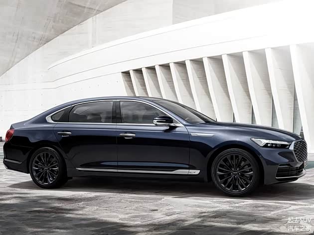 外观方面新款起亚K9采用了近似六边形的前中网,另外还点缀有大量的镀铬装饰,车灯造型狭长。包括车身窗线以及后视镜等区域都运用镀铬装饰提升档次感。