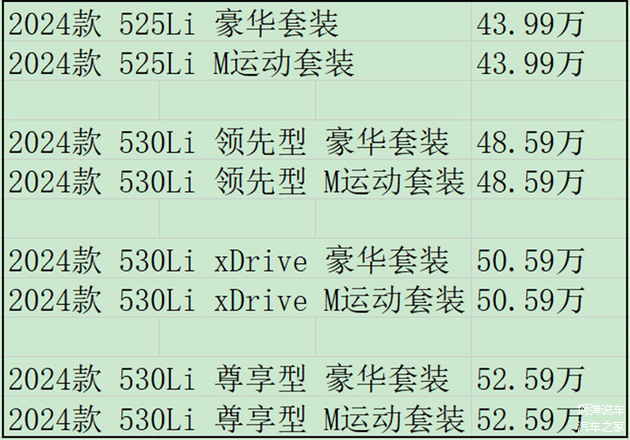 2024款 宝马5系,一共八款车型,价格区间是:43.99-52.59万。实拍车型是高配版,2024款530Li 尊享型 M 运动套装,指导价:52.59万,外观颜色是闪耀铜灰。