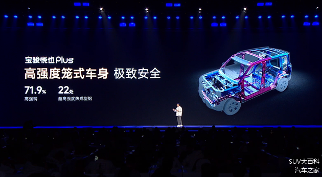 被动安全方面,宝骏悦也Plus搭载百万销量0自燃的神炼电池,还采用高强度笼式车身设计,整车高强度钢占比71.9%,其中超高强度热成型钢达到22处。