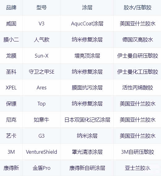 威固、XPEL、龙膜、圣科、3M这5个进口品牌属于隐形车衣市场上的前辈,知名度不用说,口碑大部分还不错,只要选对真货就没什么可吐槽的。