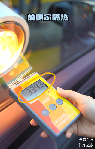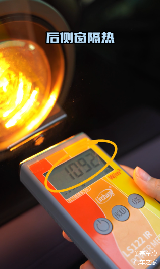 如此来看,小米SU7的前挡风玻璃和天幕确实不用贴隔热膜。慢着,如果说您看到这里,就觉得说小米SU7就不用贴隔热膜了,那就错了。小米SU7在前档风玻璃以及天幕上确实不用再贴隔热膜了,但是在侧后窗上还是需要贴隔热膜的。因为小米SU7采用的UV-IR涂层技术,而我们用专业的测试仪器看看小米SU7的红外线隔热数值是如何?