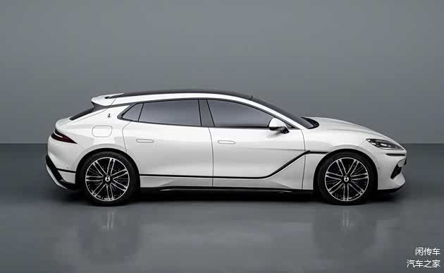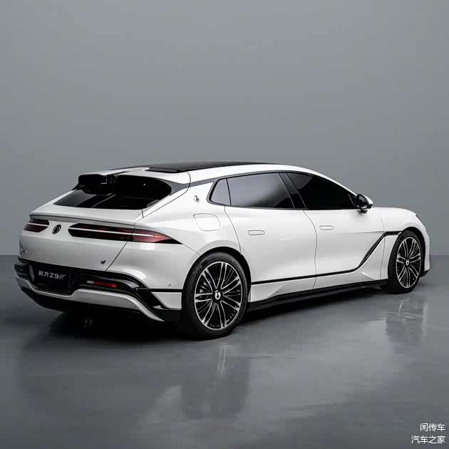 当然在车身侧面和车尾部分就没有太明显的变化,依旧有着标志性的猎装车线条,无框车门,隐藏式车门把手,明显下坠的车顶,大倾斜角度且有特殊交汇的C柱都不会缺席,后者依旧镶嵌有腾势标志,显示了车型的身份,引发了一定争议的车门下方黑色腰线也依旧存在,不过白色和黑色的熊猫撞色设计,确实感觉颜值更高一些,全新的轮毂造型更为运动。