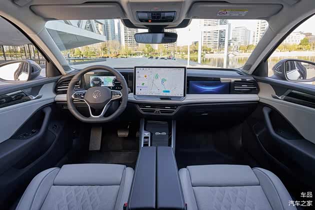 全新迈腾在内饰部分的革新很明显,中控台取消了大量实体按键、中控屏尺寸变得更大,挡把也换为最新换挡设计。