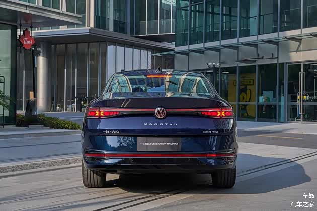 可以看出,全新一代迈腾外观少了些商务调性,新增了更多科技元素与运动属性,如前后贯穿式灯组、可点亮车标和带有一定溜背的线条。尺寸方面,新车车身三围分别为4990/1854/1487mm,轴距为2871mm。