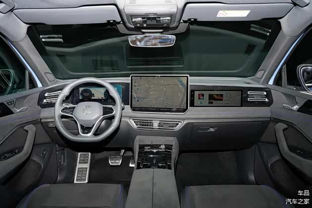 内饰部分,途观L PRO中控设计与新迈腾类似,副驾前方也提供了一块娱乐屏,包括智驾方面,新车也会搭载大疆智驾系统。动力上,途观L PRO将搭载2.0低/高功率发动机,传动部分匹配7速湿式双离合变速箱。