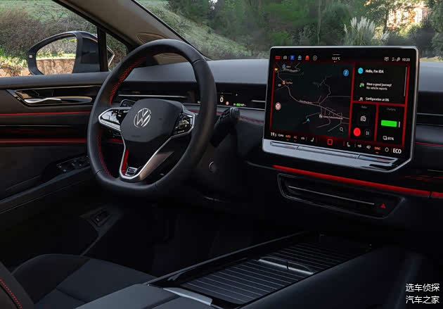 进入ID.7 GTX的车内,可以发现一体式运动座椅,前排座椅靠背上带有GTX LOGO,配上红色缝线、GTX专用方向盘和门板上的装饰,增添运动氛围。虽然是高性能车,大众没有因为减重而牺牲舒适度,GTX可以选装ergoActive座椅,表面覆盖有ArtVelours Eco绒布,提供电动12向调节,包括大腿支撑调节,以及座椅通风/加热/按摩功能。