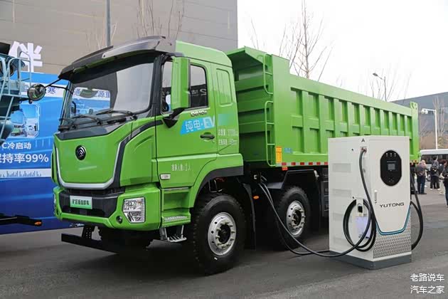 走进会场的展示区,一辆绿色的纯电动矿区版自卸车格外引人注目,它就是宇通重卡全新开发的D610E自卸车。新车采用宇通第二代纯电动重卡的独特外观,在结构和布局上与我们此前介绍的宇通纯电动自卸车有所区别。车厢容积更大,底盘更坚固,适合在矿区使用。