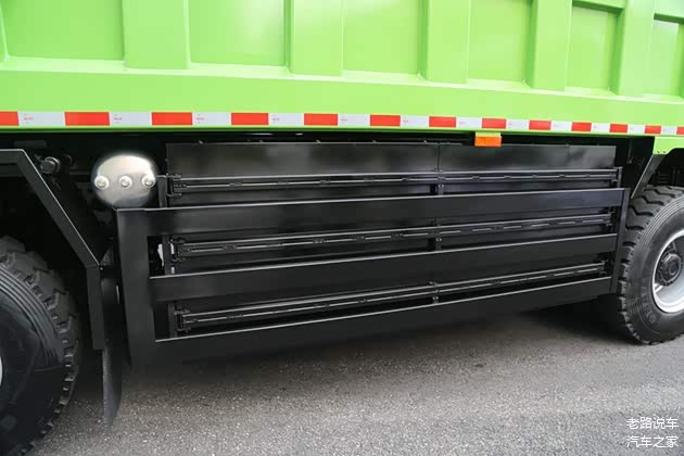 车厢采用方形车厢,栏板高1500mm,容积27.5m³。采用前置单缸直推式举升结构,结构合理。