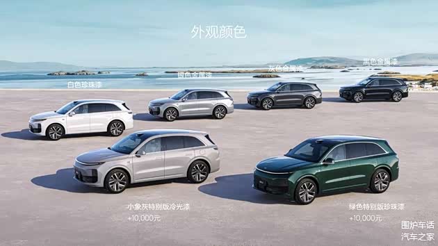 理想L6提供六种外观颜色:灰色、银色、白色、黑色四种标准漆,选装价格1万元的绿色特别版珍珠漆和小象灰特别版冷光漆。内饰提供黑白双色、黑橙双色和黑色三种风格选择。轮辋标配20英寸银灰双色和黑灰双色,可选装21英寸。5月5日前定购的首批用户可享受总价值20000元的三项权益:价值10000元的选装基金;价值5000元的家用充电桩和安装服务;定金5000元直接抵扣10000元。