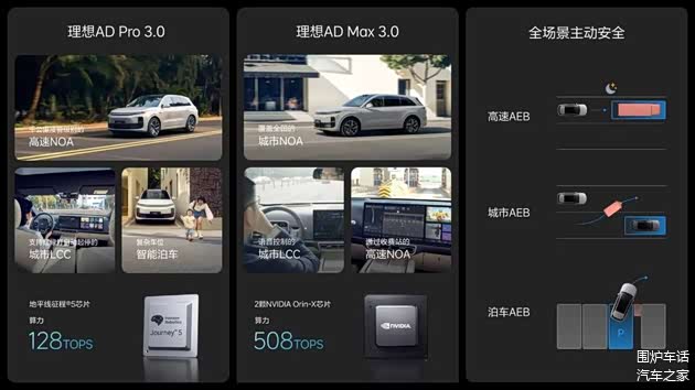 从车型命名也可以看出,理想L6提供AD Pro和AD Max两种智驾配置。AD Pro以纯视觉为主,软件将随着理想L6交付升级到AD Pro 3.0,增加了复杂泊车、城市LCC和BEV大模型的高速NOA功能。AD Max 则是视觉+激光雷达双重冗余,搭载更高算力的智驾芯片,AD Max 3.0的高阶智能驾驶能力也将进一步升级。