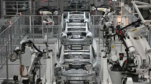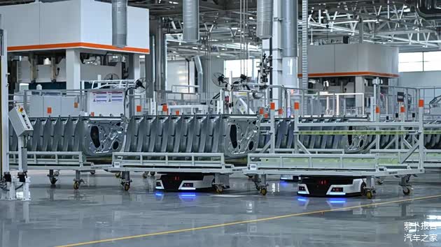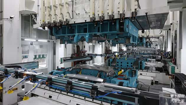 除了【压铸】和【电池】这两个比较“新”的车间外,小米汽车工厂在其余4个传统工艺环节也引入了大量的智能化技术。比如在冲压车间,为了实现车身妖娆的曲面造型,小米采用6900t冲压线,可以实现钢铝混合材料冲压,每4秒钟完成一个零件的制造,整车所有的大型覆盖件均出自这个车间。