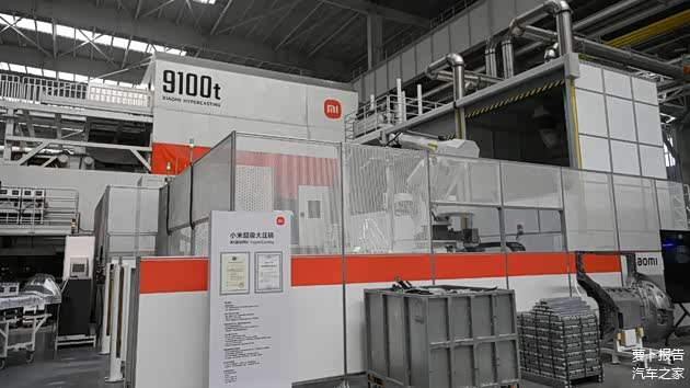 在压铸车间里,我们可以看到SU7发布会上花了很大篇幅讲解的9100t压铸机。实际上,小米的压铸车间是以集群的形式运转的,它不仅包括全栈自研的9100t压铸机,还包括了熔炉以及周边功能区,整个压铸岛占地面积840平米。