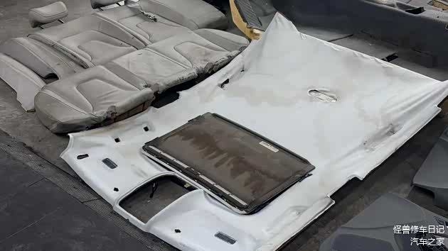 顶棚、ABC柱进行重包修复,包括天窗盖板也一并做了处理。