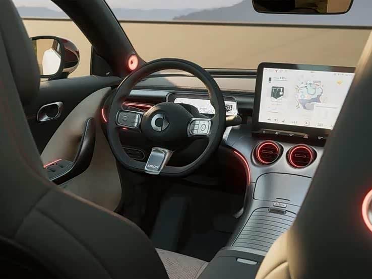 此次试驾的正是这款幻想紫,当第一眼看见这款紫色+白色小车时还是相当惊艳,圆润的前脸两侧大灯采用“双C”内扣,下方黑色棱形中网保险杠搭配水滴状的白色装饰,精致典雅中带着几分科技感。在无边框车门和隐藏式门把手下,一抹紫色温润细腻,彰显优雅与时尚。后方上部白色导流板,配以下方黑色后档玻璃和椭圆形尾灯,又透着几分活力与运动气息!