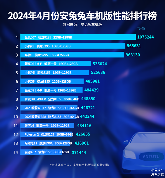 从总分来看,MT8676的性能已经达到了骁龙8295的水准,甚至要比大部分搭载骁龙8295的车型跑分成绩高一些。