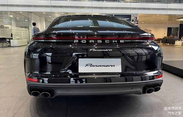 这个看个人喜欢,尾部的变化更大,这个后备箱上面有黑色的扰流板,无边框的后窗,还有跟随时速和模式自动升降的尾翼,贯穿式的尾灯之前是一条灯带,现在是两条,增加保时捷的标志,下面还有帕拉梅拉的标识,再往下是竖向的垂直空气动力学套件。