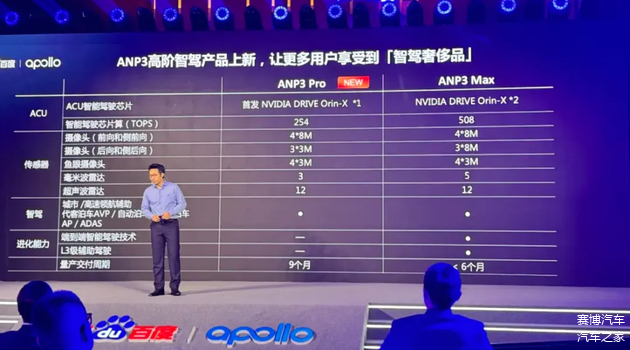 在百度的规划中,ANP3 Pro可支持15万-25万元价格区间的新能源车型搭载;搭载2颗NVIDIA DRIVE Orin的Apollo ANP3 MAX主要支持25万元以上的新能源车型,产品线进一步丰富。