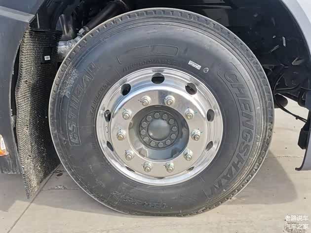 VGD71S前桥,使用铝合金轮圈,全车使用成山CST113A 12R22.5型轮胎。