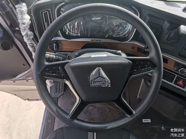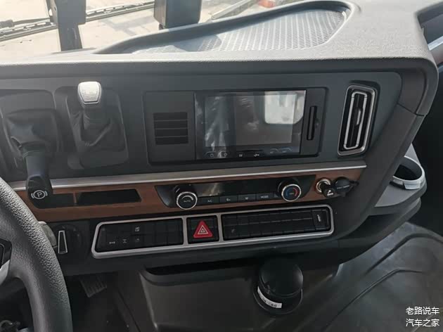 这辆豪沃TH7牵引车采用TH7-G驾驶室,颜色鲜艳,细节精致。车内风格大气美观,透出欧洲风情的精致感。车内颜色以上灰下黑为主,搭配包围式仪表台,操作便利,造型也很时尚。仪表台上使用了美观的木纹装饰,现代之中又有着古朴的典雅。车上还配有双色多功能座椅和时尚的液晶屏,液晶屏整合了收音机、蓝牙、音乐、视频、导航、监控等多种功能,在长途行车中可以给车上人员带来极大的便利。驾驶室后部设有上下两个卧铺,尺寸宽敞、颜色美观,为车上人员提供舒适的休息和生活空间。