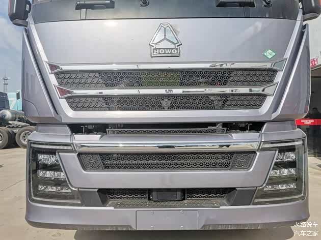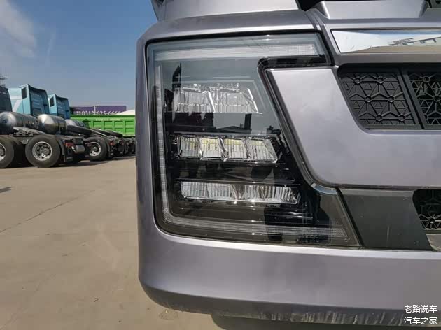 前脸采用V型设计,配以银色镀铬装饰条,进气格栅采用密集的三角形图案进行装饰,前脸上还有LNG标识方便识别。