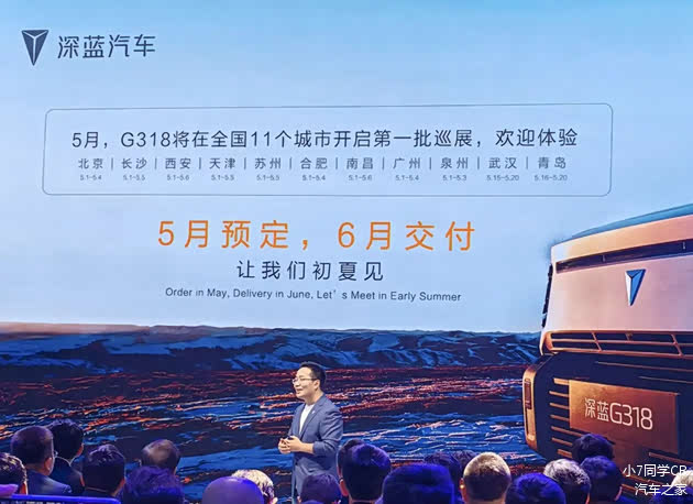 深蓝G318将在5月份开启预定(第一批巡展城市包含:北京、长沙、西安、天津、苏州、合肥、南昌、广州、泉州、武汉、青岛),同时在6月开启交付。