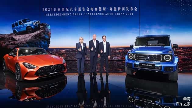 梅赛德斯-奔驰携1款全球首发、7款中国首发及车展首秀、8款中国上市的全品牌21款车型和前瞻数字科技亮相。其中,全新梅赛德斯-奔驰纯电G级越野车全球首发,“方盒子”造型、圆形头灯以及独特的关门声等经典元素得以保留;前脸LED灯带环绕的黑色面板散热器格栅,则是电动时代的独特表达;车尾的备胎罩变成了能存放充电枪等工具的“小书包”。它一样继承了传统越野三件套:差速锁、非承载式车身及低速越野挡。动力方面,峰值功率达432千瓦,带来1,164牛·米的峰值扭矩,百公里加速仅4.7秒。涉水深度850毫米,比燃油版提升了150毫米。最小离地间隙250毫米,可以实现100%(45度)的爬坡能力,并在35度时保持侧倾稳定性。