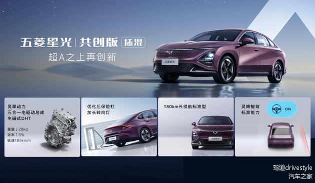 五菱星光共创版插混积极听取用户声音,在超A实力之上再创新。整车配备全新灵犀动力五合一电驱动总成电磁式DHT,极速提升至185公里/小时,驾控更澎湃。外观上,运用了更和谐的后保险杠、后转向灯加长,增加尾部的辨识度。