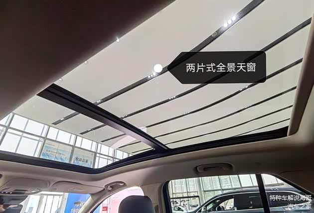 两片式全景天窗,别克现在的新款车型,大都配备全景天窗,随着时代的发展,科技的进步,人们对车子的配置要求也是越来越高,这也是智能化时代,人们媒体习惯,生活习惯改变所必须的。