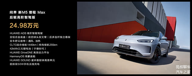 4月23日下午,问界新M5正式上市,新车共推出三款车型,分别是问界新M5增程Max后驱高阶智驾版24.98万、问界新M5纯电Max后驱高阶智驾版26.98万,问界新M5增程Max RS四驱高阶智驾版27.98万。现在汽车市场推出新车型多数采用的战略都是降价增配,这次问界新M5又将采用什么战略呢?咱们一起来看看。