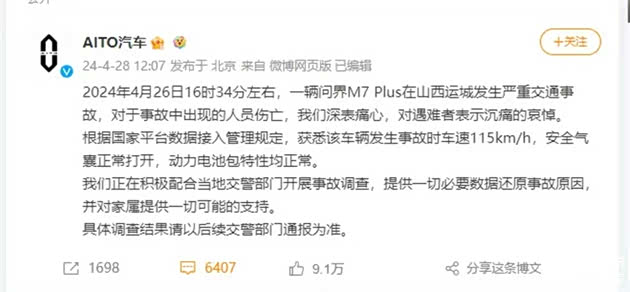 在问界M9上市的时候,余承东也喊出了“安全是最大的豪华”,我们也不否认华为创新技术、设计理念对于行业带来的变革,但面对事故之后的一系列疑问,消费者有知情权,问界的合作双方也应该及时回复大家的关切。