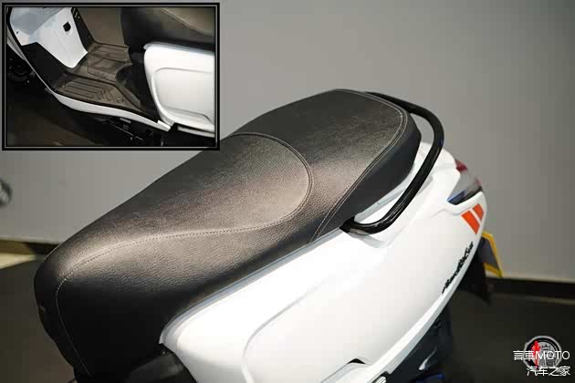 车身框架采用环抱式结构设计,在兼顾刚性的同时,纯平踏板也满足了日常储物需求。此外,车辆还提供了前隐藏式储物盒,虽然空间不大,但可以存放一些随身小件。座椅前端配有隐藏式置物挂钩,实用方便。座下储物空间可容纳一顶头盔,并内置有USB充电接口,满足日常移动设备的充电需求。座椅高度为760毫米,整备质量为128kg,油箱容量为6.5升。
