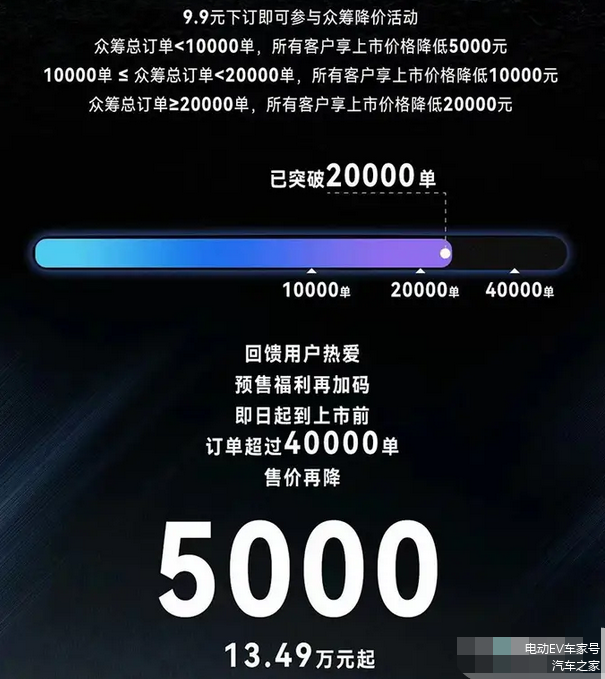 销售员表示,根据预售公布的最新权益,9.9元下订,众筹总订单达到或超过40000单,所有客户将享受上市价格降低2.5万元的优惠。因此,风云T9的起售价大概率为13.49万元(预售价格为15.99万元起)。