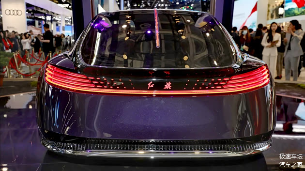 车顶是一整块玻璃穹顶,红旗标志性的红色中轴线,从车前盖,到车顶,一直延伸到车尾,形似中流砥柱,与前脸的高山飞瀑相呼应。