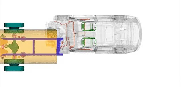 而洒水车尾部有突出梁状坚硬结构,又没有防撞梁,在碰撞时尾部梁状坚硬结构对问界M7车体入侵严重,前机舱、乘员舱受到了极大损害,线束瞬间被切断。
