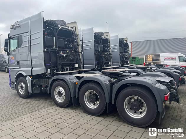 这三台曼恩TGX均采用8x4的驱动形式,其中第三、第四桥为驱动桥,第一、第二桥均具备转向能力,是欧式大件车的标准紧凑布局。针对超重型运输需求,车辆配备了16吨级别的轮边减速桥,桥壳增强,承载能力更出色。