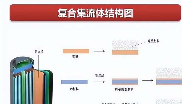 你有没有想过,电动车的锂电池里面,有一个叫做“集流体”的东西,它是如何影响电池的性能和安全的呢?近日,一个叫做复合集流体的新材料正在逐渐被电池行业所采用,他能够让电池更加安全、性能更稳定,而且还能够降低生产成本。据了解,华为的最新产品 问界M9已经采用了复合集流体,而且订单已经突破了25000台。这是一个令人期待的新技术,让我们来一起了解一下复合集流体的优势和应用吧。复合集流体是一种由金属-高分子材料-金属三层复合结构构成的材料,它采用了PET/PP等高分子材料作为中间层基膜,在上下两面堆积出双层铜/铝导电层。相较于传统集流体,复合集流体具备降本和安全优势。传统集流体的减薄面临瓶颈,复合集流体采用“高分子基材+轻薄导电层”的结构,可以有效地防止电池热失控,降低铜使用量,实现降本,减重进而提升电池能量密度。